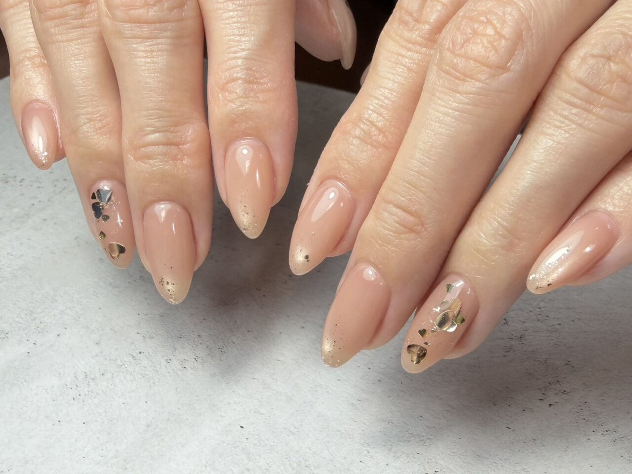 ハートネイル 2026 3/04 Nailist masami ナチュラルに溶け込むハートのホログラムがキラッと輝くデザインです。 岡山市北区表町1-5-1岡山シンフォニービル2FPromote岡山城下店 TEL 050-8892-7806 Nailist masami